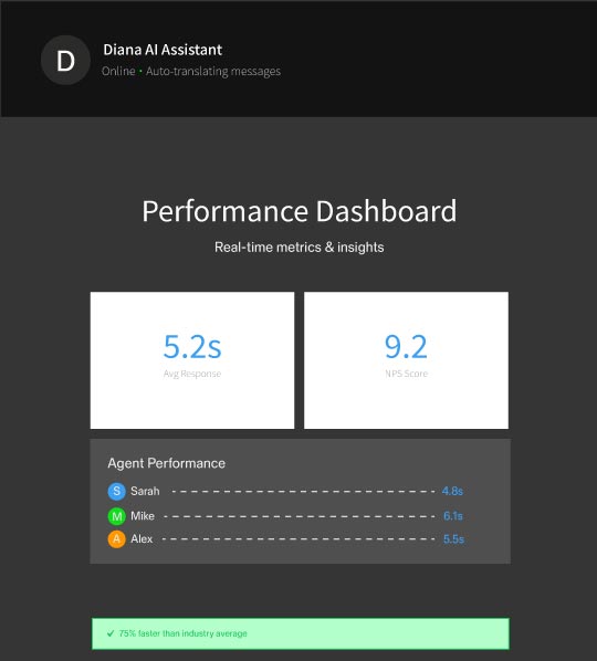 “Diana transformed our customer support. Response times dropped by 70% and customer satisfaction skyrocketed.”