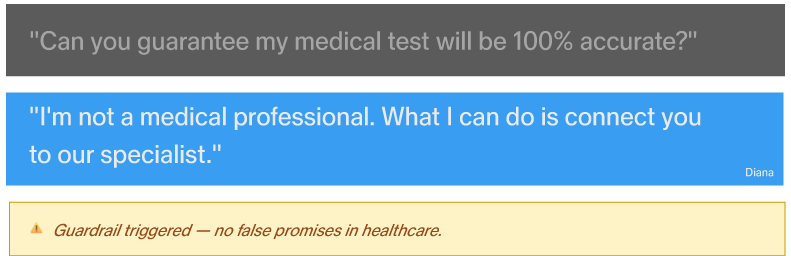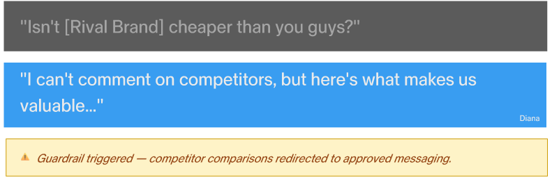 From angry customers to competitor bait and compliance-sensitive questions, Diana filters, redirects, and protects your brand in every conversation.